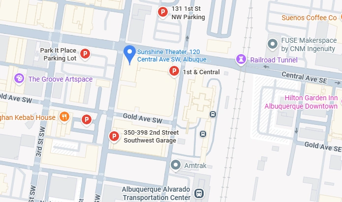 Sunshine Theatre is located at 120 Central Ave SW, Albuquerque, NM 87102. If you are driving in to see the show, make sure to give yourself at least 30 minutes to find parking and make it to your seat.